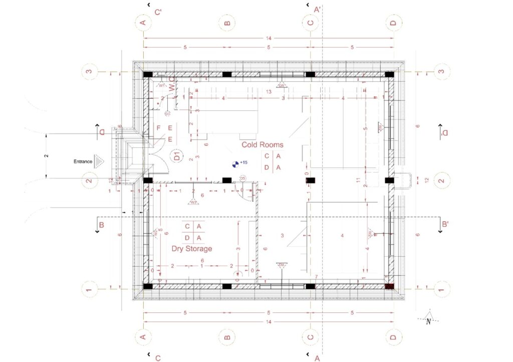The building is the cooling rooms of the clinic of the Directorate of Health in Homs – Baba Amr. A new building would be constructed the yard area north of the existing clinic , we designed many alternatives in order to choose the most sufficient one. In each one of them we were attained to consider all the sanitary conditions Here is the chosen design alternative after consulting with the client and specialists concerned.The scheme demonstrate Dimensions, different layers for insulation and the constructional information as