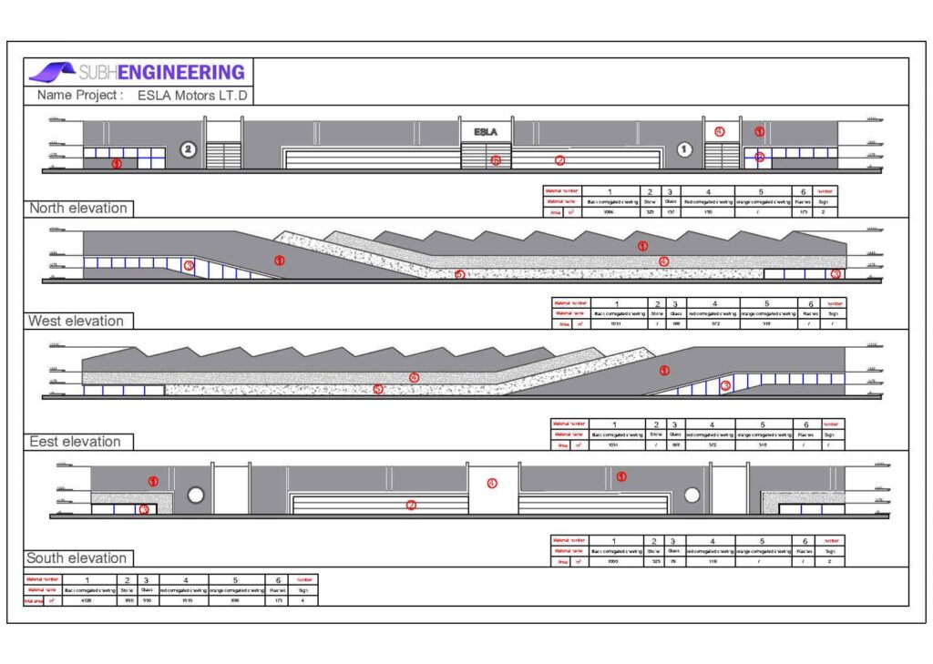 Esla is a factory of electric cars it consists of several halls (welding hall – painting hall – assembly and examination hall), the construction of which is a metal hangar composed of lattice beams with a span of (25 m – 12 m – 15 m – 30 m) with an area of (32760 m 2) for metal construction and (918 m2) for concrete construction. Horizontal loads (winds – earthquakes) are resisted by means of bracing networks distributed in a way that enables us to use them optimally to resist horizontal forces.